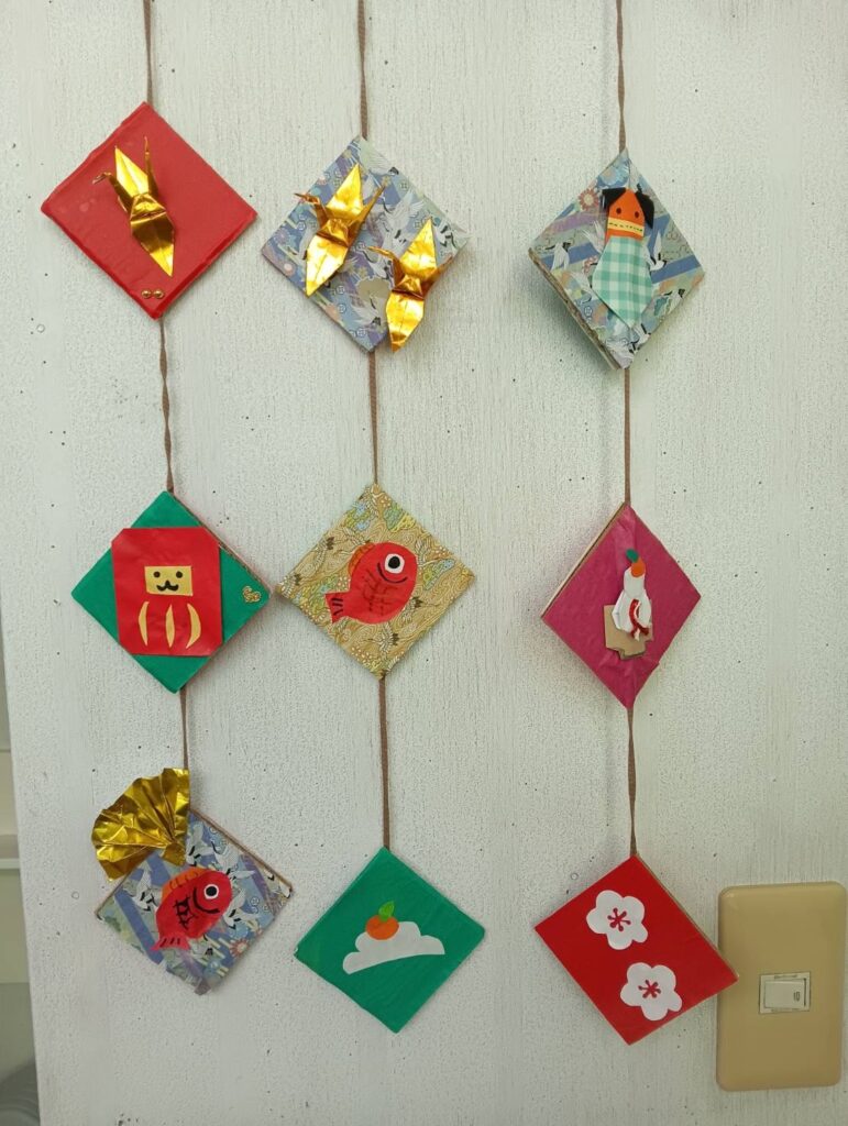 季節のイベント飾りとして、クリスマスツリーの飾りと、正月の縁起物の飾りを作りました😆‼️