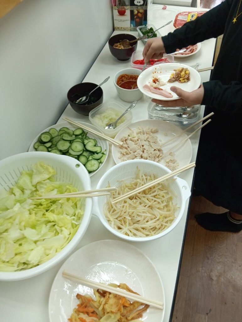 野菜やチキンなどを切って、自分の好きな具材をトッピングするアレンジそうめんを作りました✨