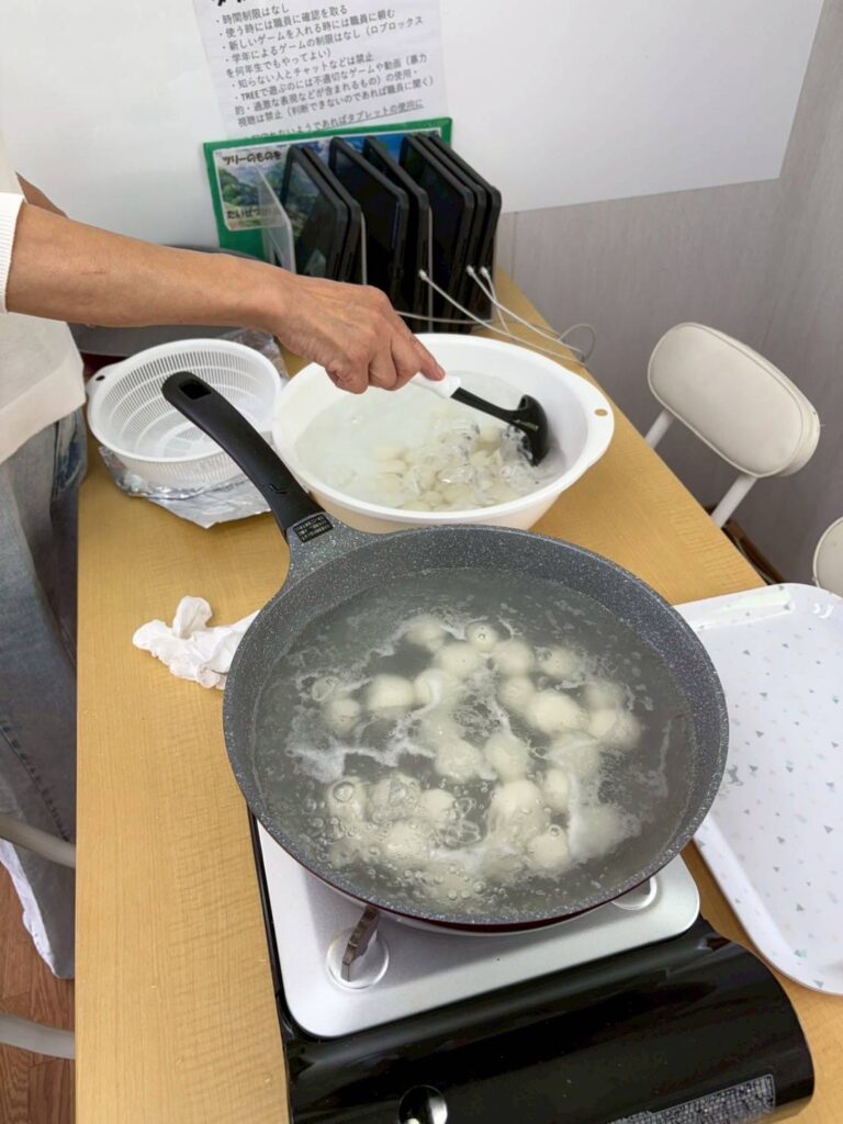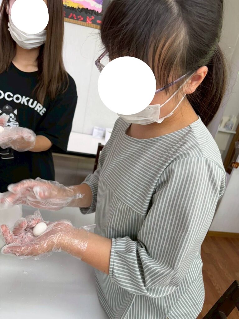子どもたちが生地をこね、もちもちのお団子を作ることができました😆☀️