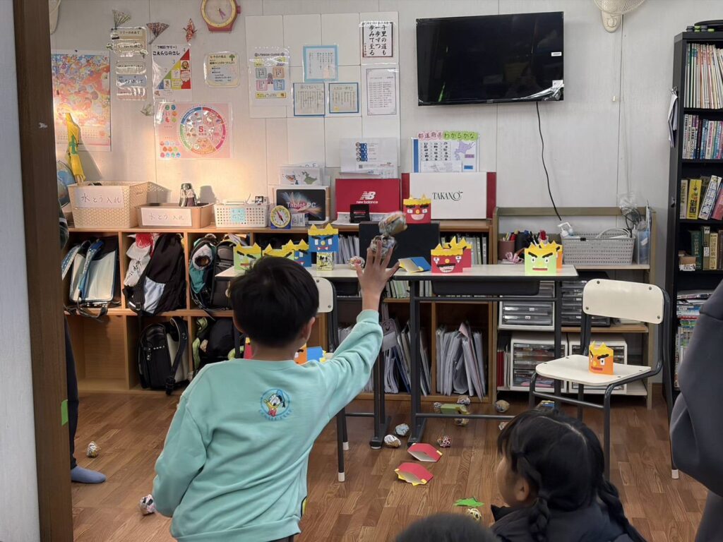 1月の工作で作った鬼の的を使って的当てを行いました👹