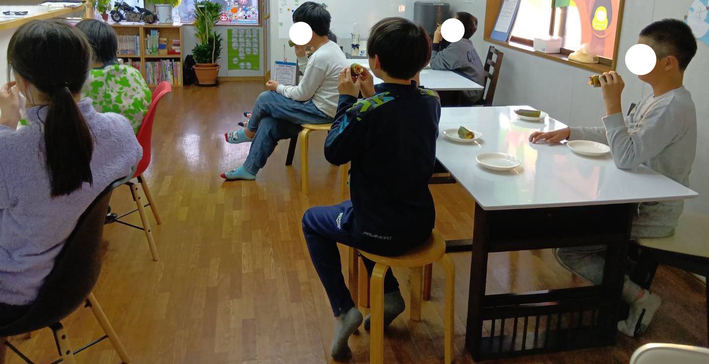おやつには、豆と今年の方角「南南東」を向きながら恵方巻きを食べました🫘