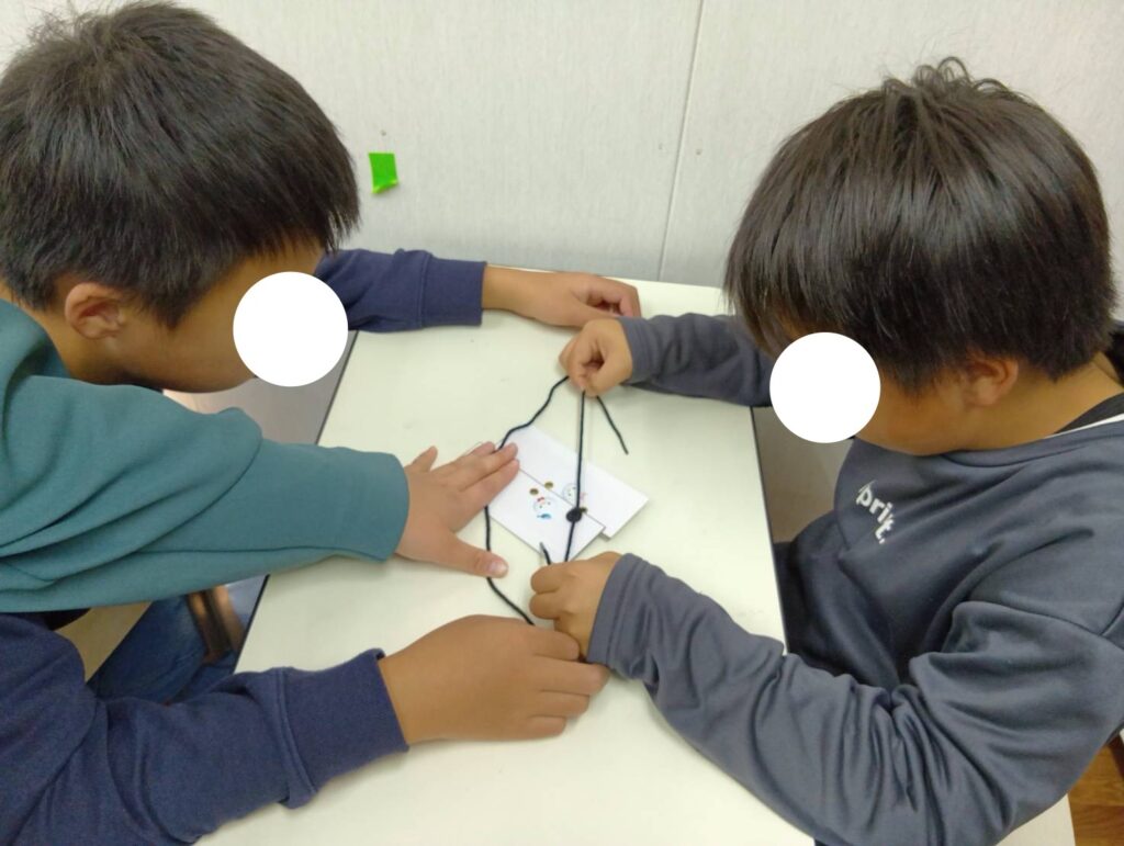 左右を間違えてほどいてしまう場面も見られましたが、みんな最後まで頑張っていました😊!