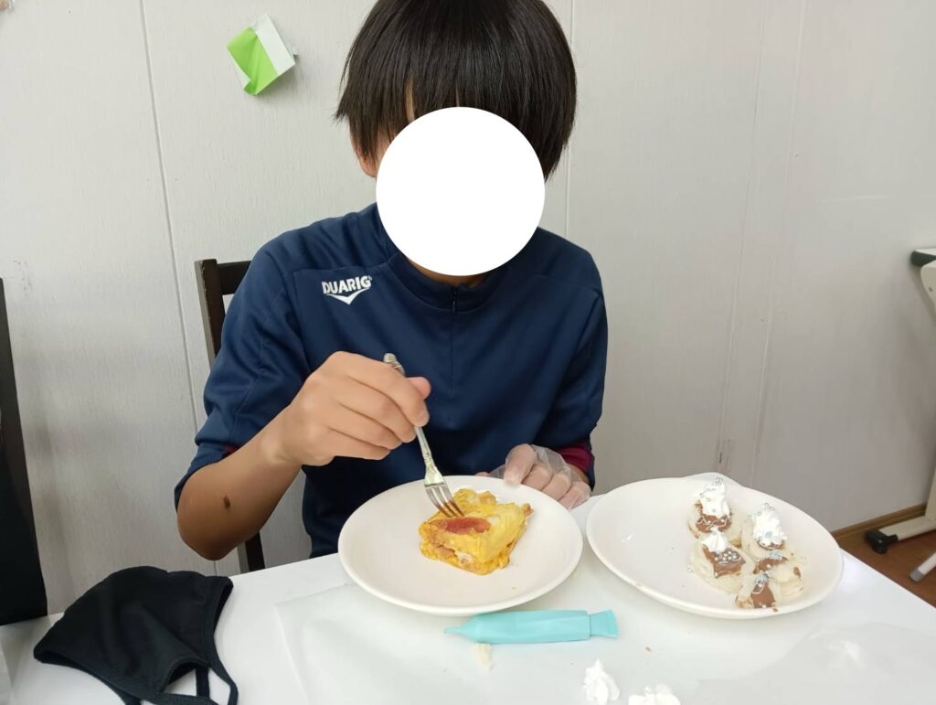 調理実習、そうめんアレンジ野菜やチキンなどを切って、自分の好きな具材をトッピングするアレンジそうめんを作りました✨野菜を切るのがとても上手でした😊