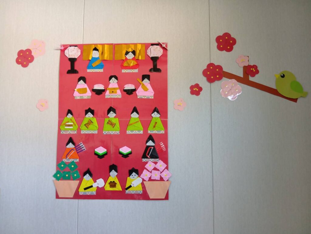 ひな祭り製作雛人形を飾る意味、ひな祭りの食べ物を学びながら製作しました🎎✨ みんなで5段の雛人形とステンドグラス風の雛人形、2種類を作りました…