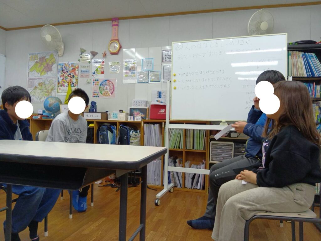 「おにぎりはおやつか」をテーマにディベート大会を行いました🍙初めてのため難しそうな顔をしていましたが、まずは相手の話を聞いて流れを覚える事が出来…